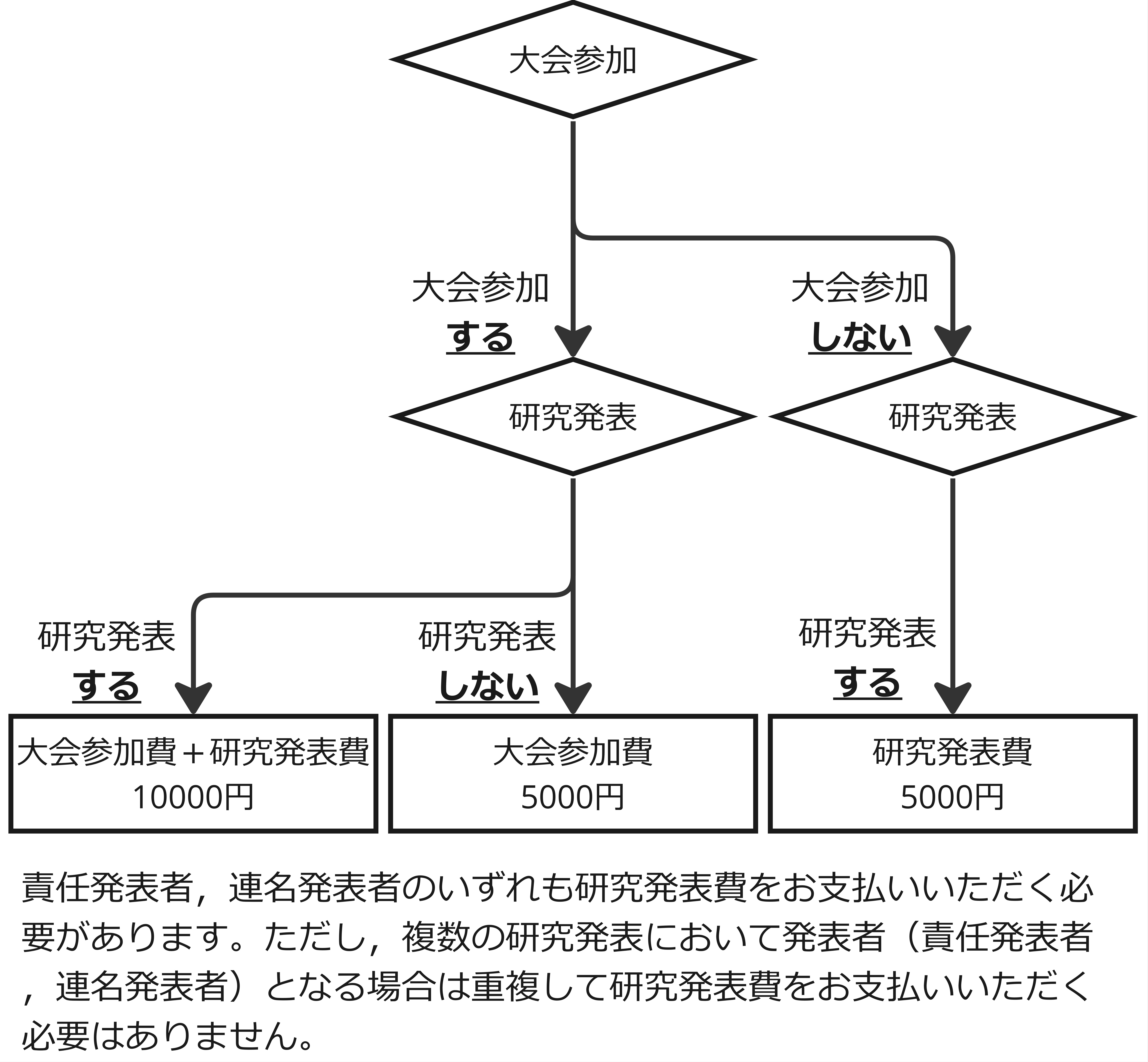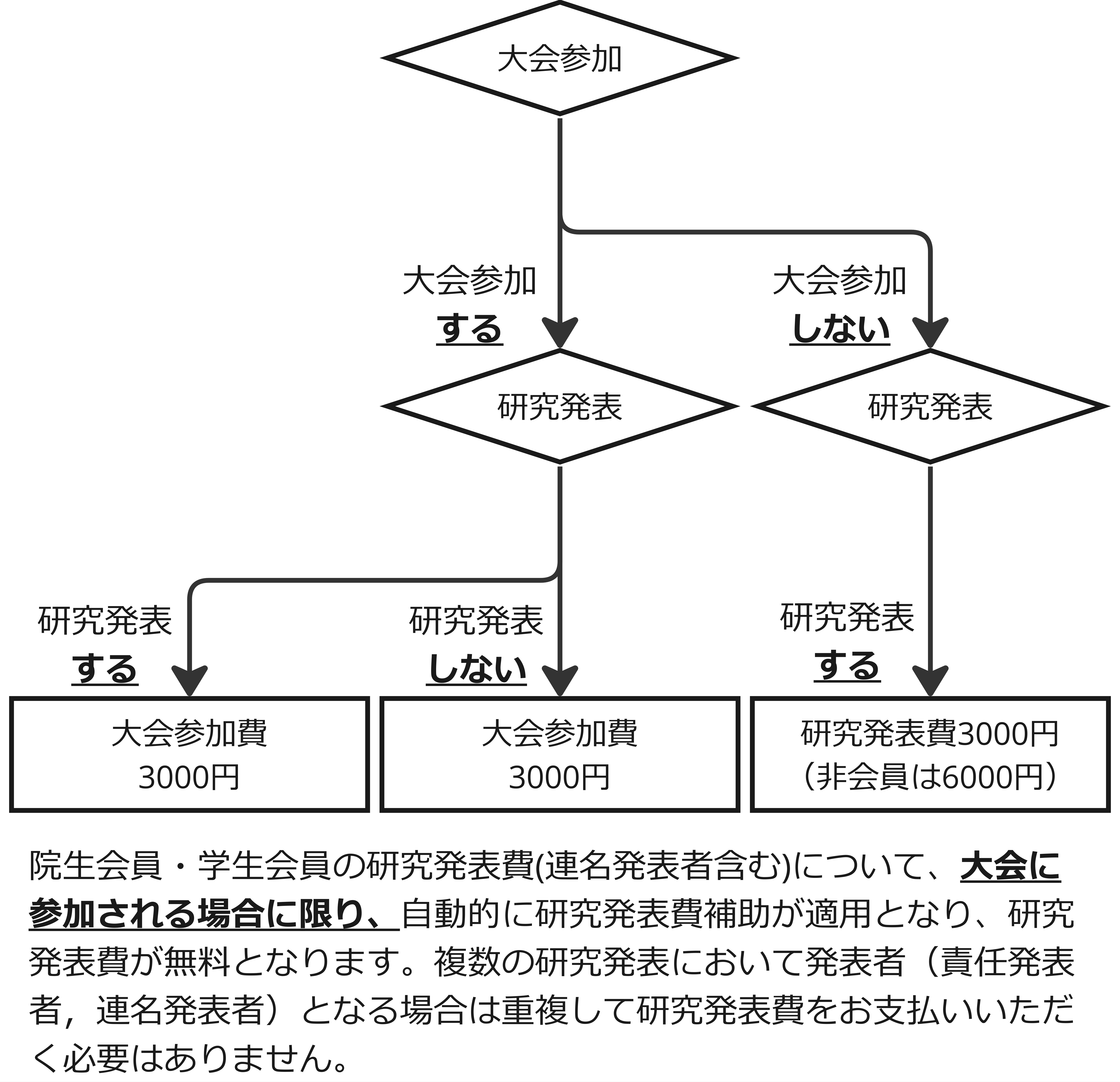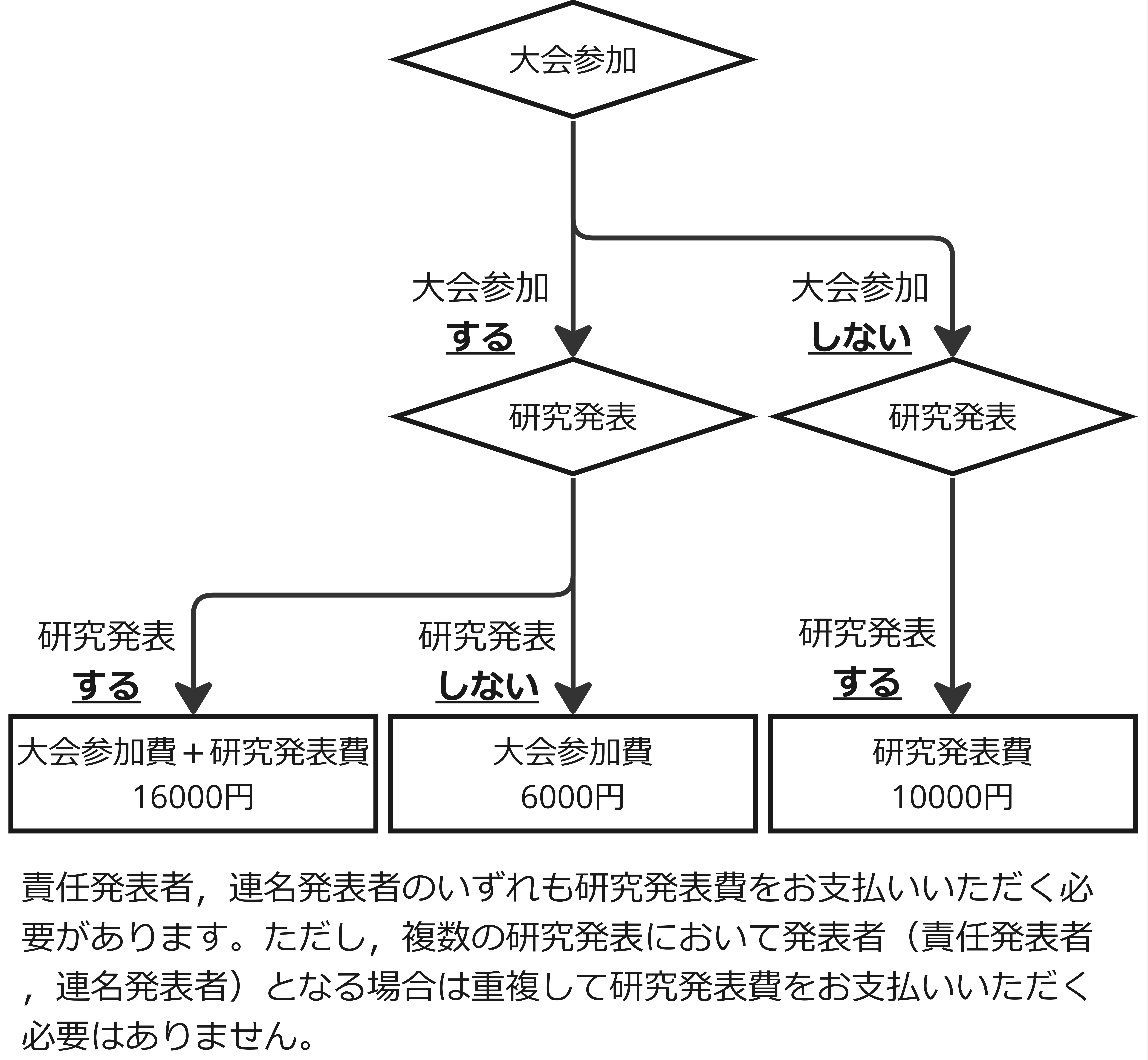 会員・非会員共に複数の研究発表において発表者(責任発表者,連名発表者)となる場合は,重複して「研究発表費」をお支払いいただく必要はありません。