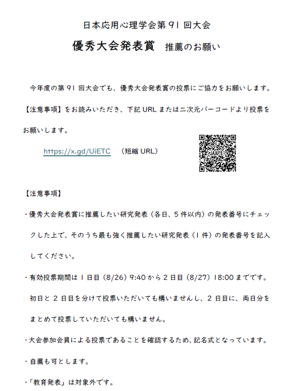 抜粋「日本応用心理学会優秀大会発表賞規程」より